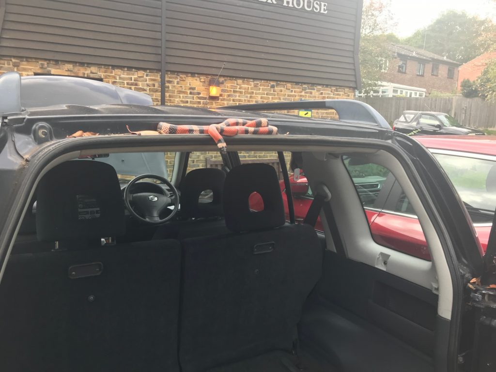 “Then, when we looked in the boot, we spotted him curled up in the groove along the top of the door.”