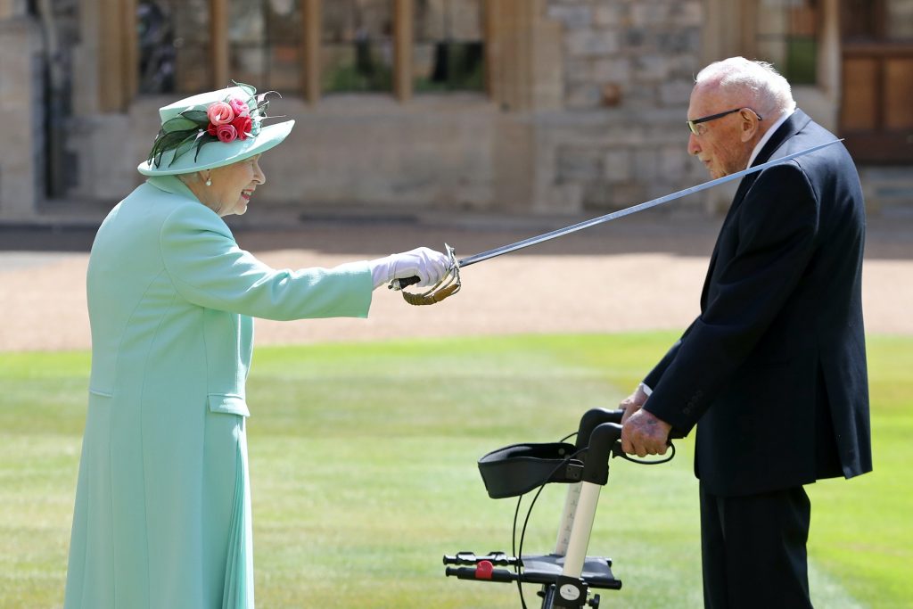 But his efforts struck a chord with national feeling, and praise and donations flooded in, with Prime Minister Boris Johnson saying the veteran “provided us all with a beacon of light through the fog of coronavirus” and recommended he be knighted.